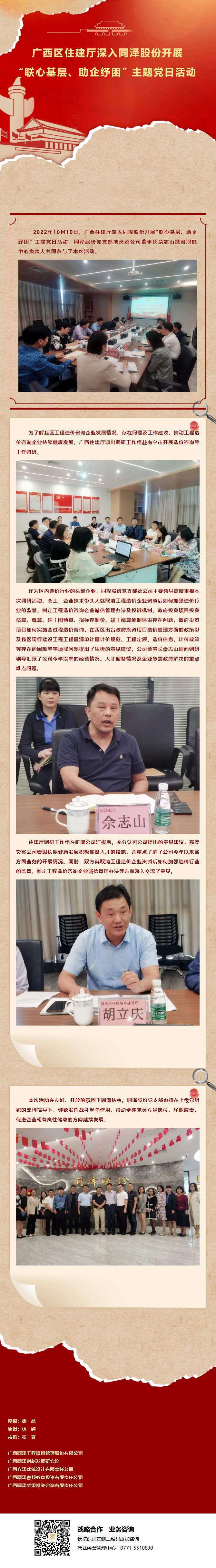 广西区住建厅深入15vip太阳集团开展“联心基层、助企纾困” 主题党日活动
